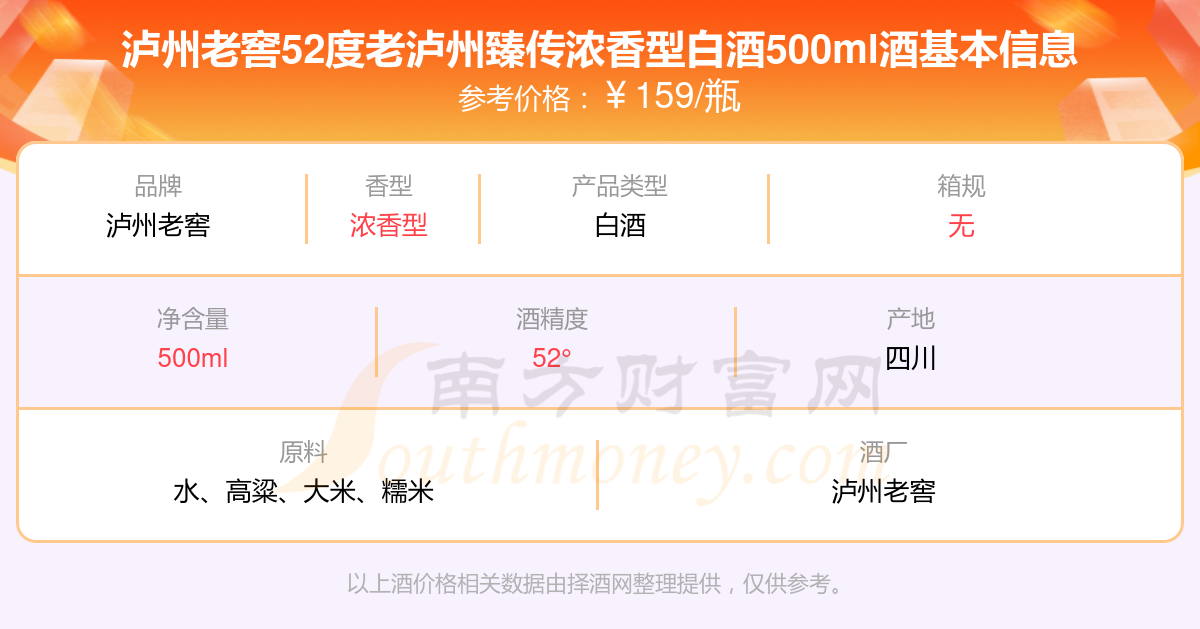 瀘州老窖52度老瀘州臻傳濃香型白酒500ml基本信息