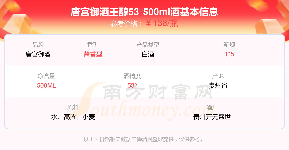 唐宮御酒王醇53°500ml基本信息