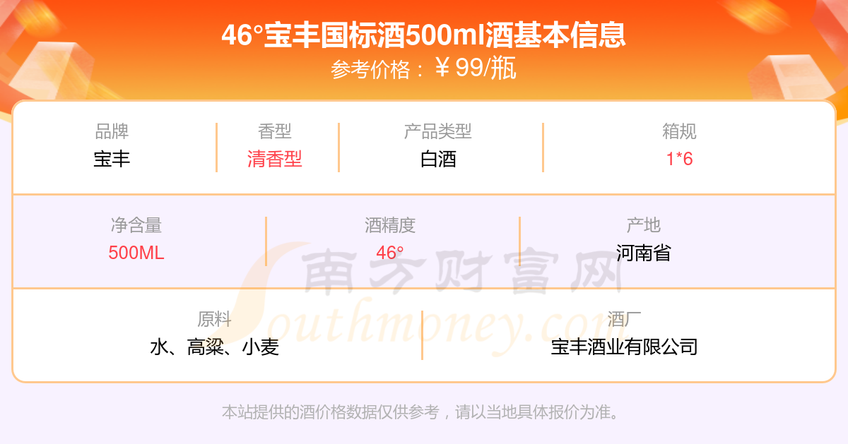 46°寶豐國(guó)標(biāo)酒500ml基本信息