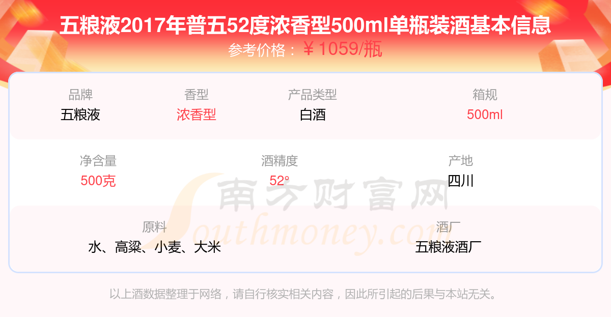 五糧液2017年普五52度濃香型500ml單瓶裝基本信息