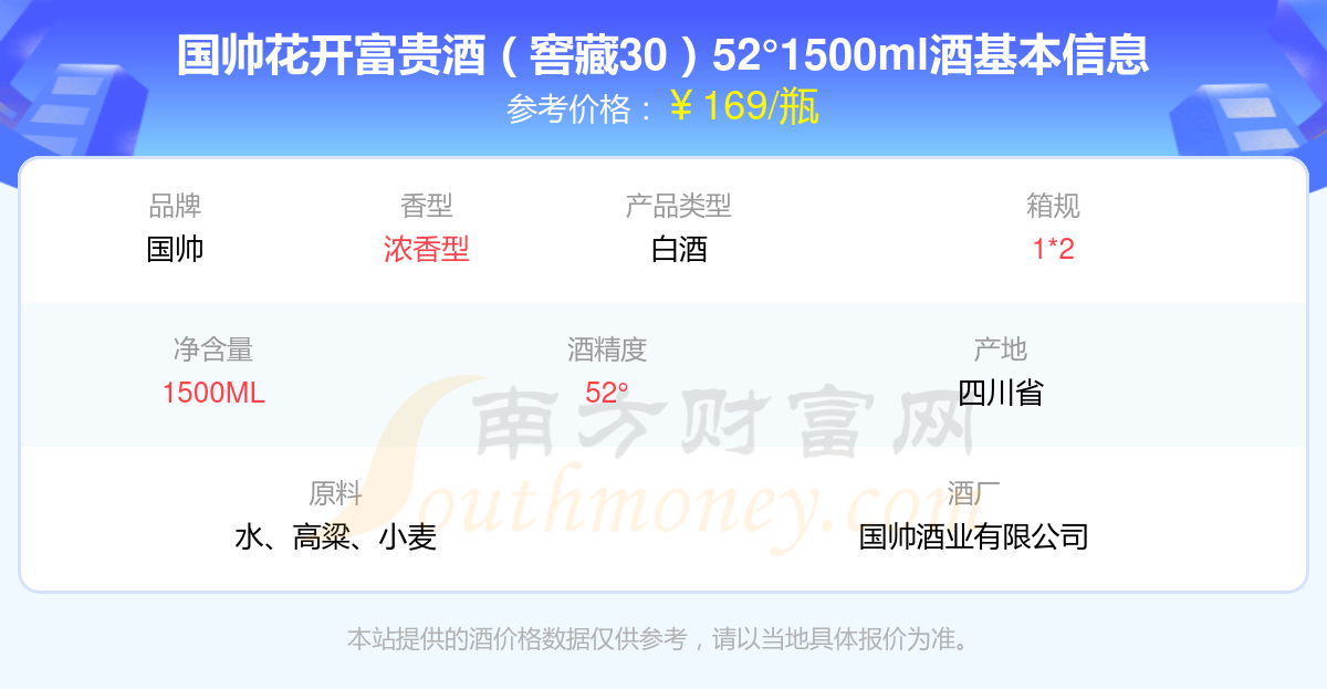國帥花開富貴酒(窖藏30)52°1500ml基本信息