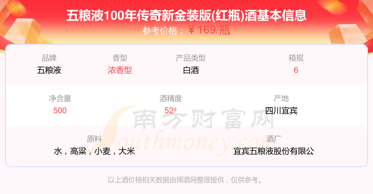 五糧液100年傳奇新金裝版(紅瓶)基本信息