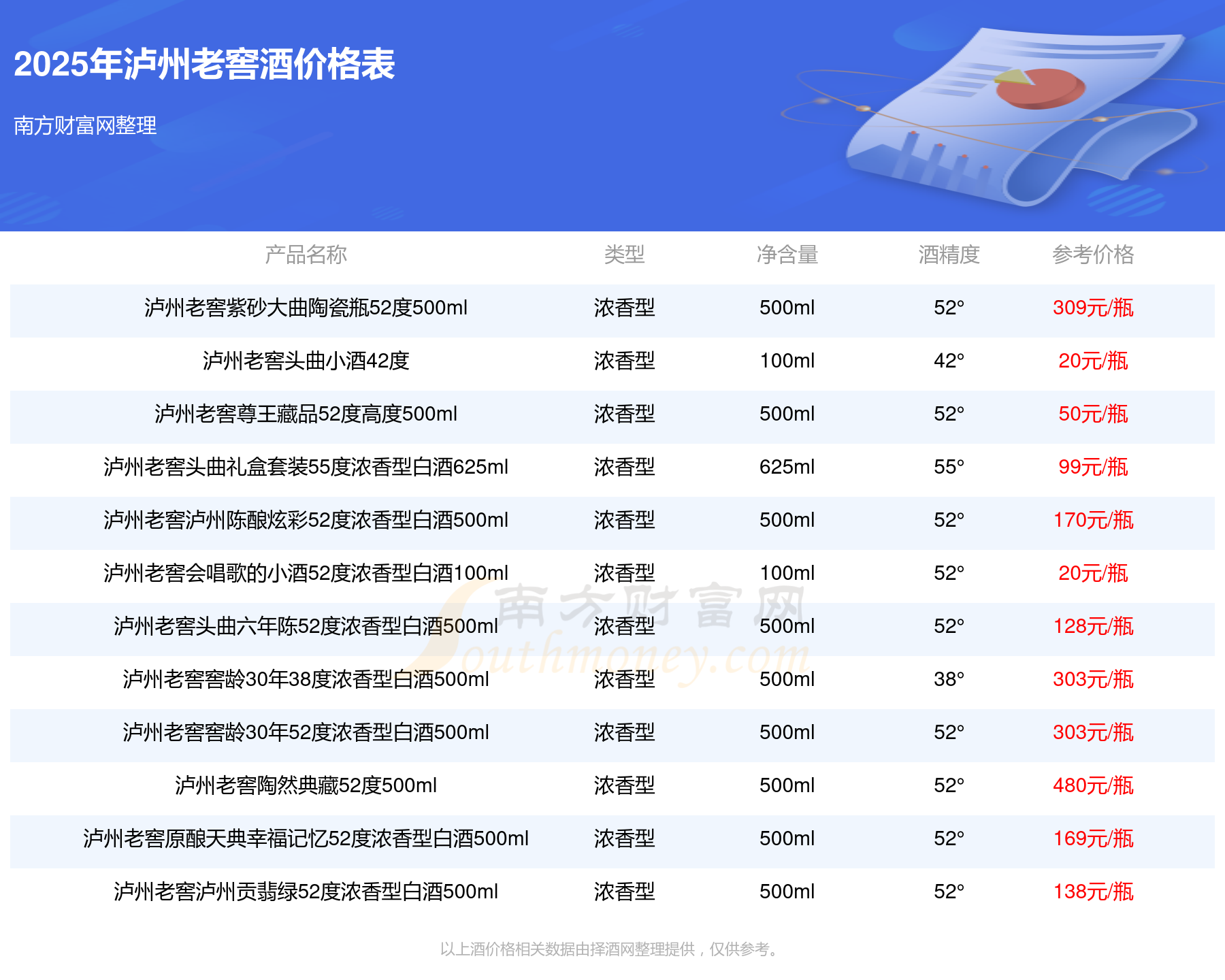 2025年瀘州老窖酒瀘州老窖國窖1573春釀鼠兆豐年E 55度、瀘州老窖國窖1573生命中的那壇酒55度014、瀘州老窖國窖1573春釀鼠兆豐年A 55度、瀘州老窖國窖1573生命中的那壇酒55度013濃香型白酒1000ml、瀘州老窖國窖1573生命中的那壇酒55度009 1000ml、瀘州老窖國窖1573中國品味52度濃香型白酒500ml等最新價(jià)格如下:瀘州老窖國窖1573春釀鼠兆豐年E 55度參考價(jià)17999元/瓶、瀘州老窖國窖1573生命中的那壇酒55度014參考價(jià)9999元/瓶、瀘州老窖國窖1573春釀鼠兆豐年A 55度參考價(jià)5088元/瓶、瀘州老窖國窖1573生命中的那壇酒55度013濃香型白酒1000ml參考價(jià)4988元/瓶、瀘州老窖國窖1573生命中的那壇酒55度009 1000ml參考價(jià)4288元/瓶、瀘州老窖國窖1573中國品味52度濃香型白酒500ml參考價(jià)2888元/瓶。