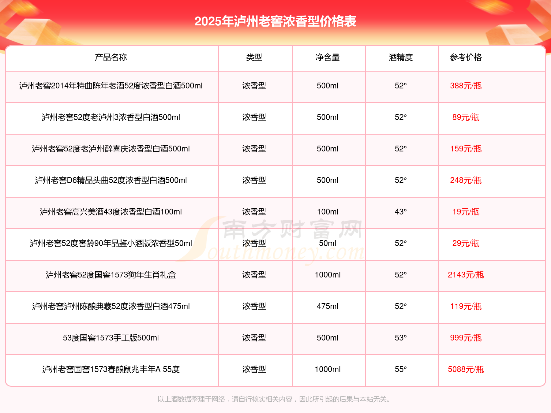 瀘州老窖國(guó)窖1573春釀鼠兆豐年E 55度參考價(jià)17999元/瓶、瀘州老窖國(guó)窖1573生命中的那壇酒55度014參考價(jià)9999元/瓶、瀘州老窖國(guó)窖1573春釀鼠兆豐年A 55度參考價(jià)5088元/瓶、瀘州老窖國(guó)窖1573生命中的那壇酒55度013濃香型白酒1000ml參考價(jià)4988元/瓶、瀘州老窖國(guó)窖1573生命中的那壇酒55度009 1000ml參考價(jià)4288元/瓶。