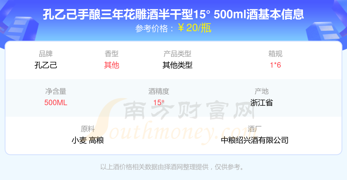 孔乙己手釀三年花雕酒半干型15° 500ml基本信息