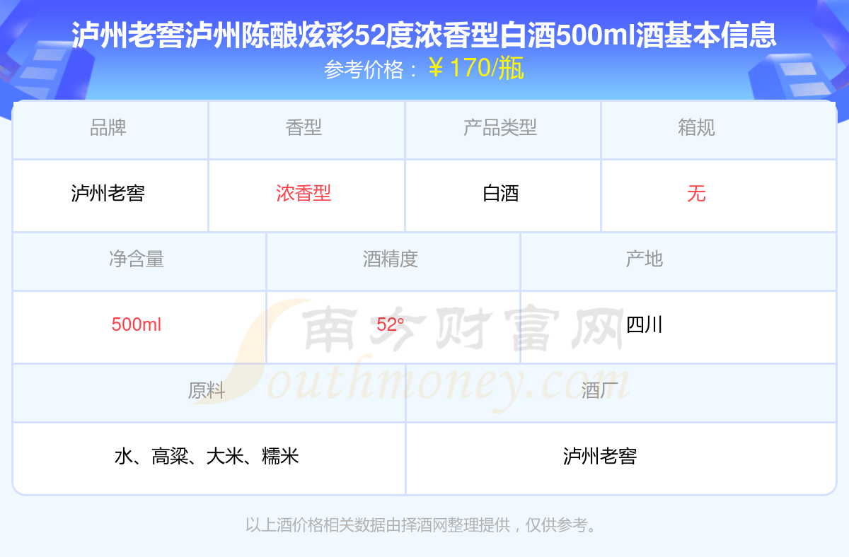 瀘州老窖瀘州陳釀炫彩52度濃香型白酒500ml基本信息