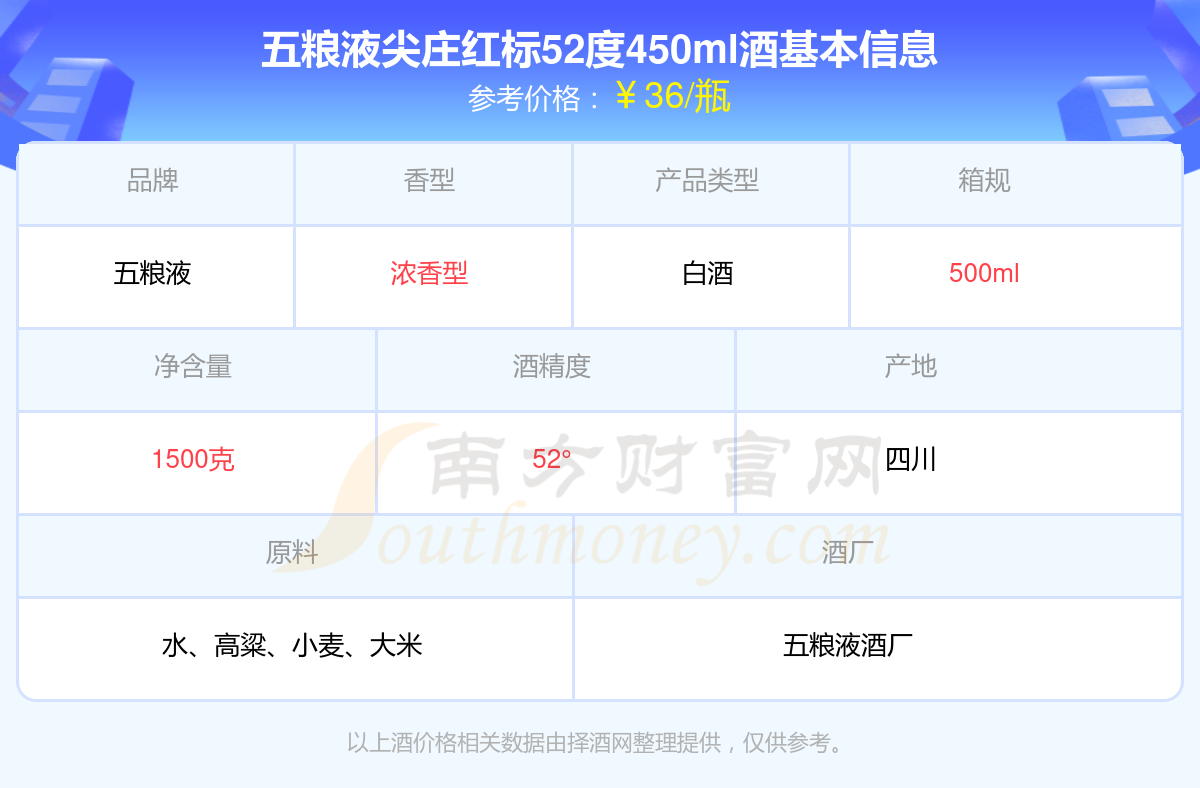 五糧液尖莊紅標(biāo)52度450ml基本信息