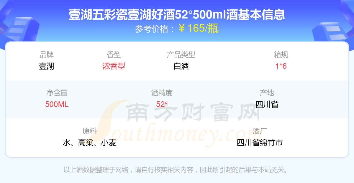 壹湖五彩瓷壹湖好酒52°500ml基本信息