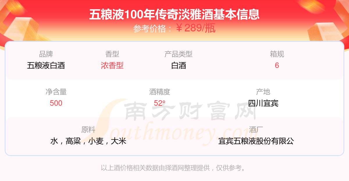 五糧液100年傳奇淡雅基本信息