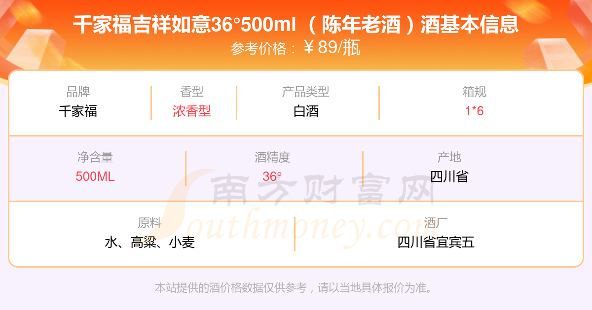 千家福吉祥如意36°500ml (陳年老酒)基本信息