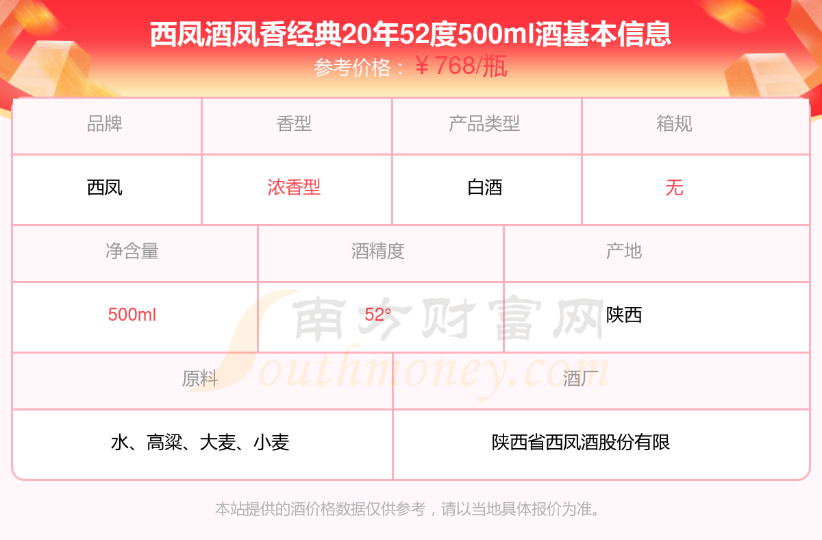 西鳳酒鳳香經(jīng)典20年52度500ml基本信息