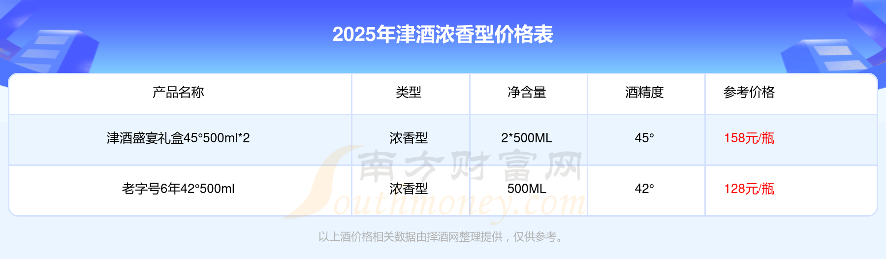 津酒盛宴禮盒45°500ml*2參考價(jià)158元/瓶、老字號(hào)6年42°500ml參考價(jià)128元/瓶。