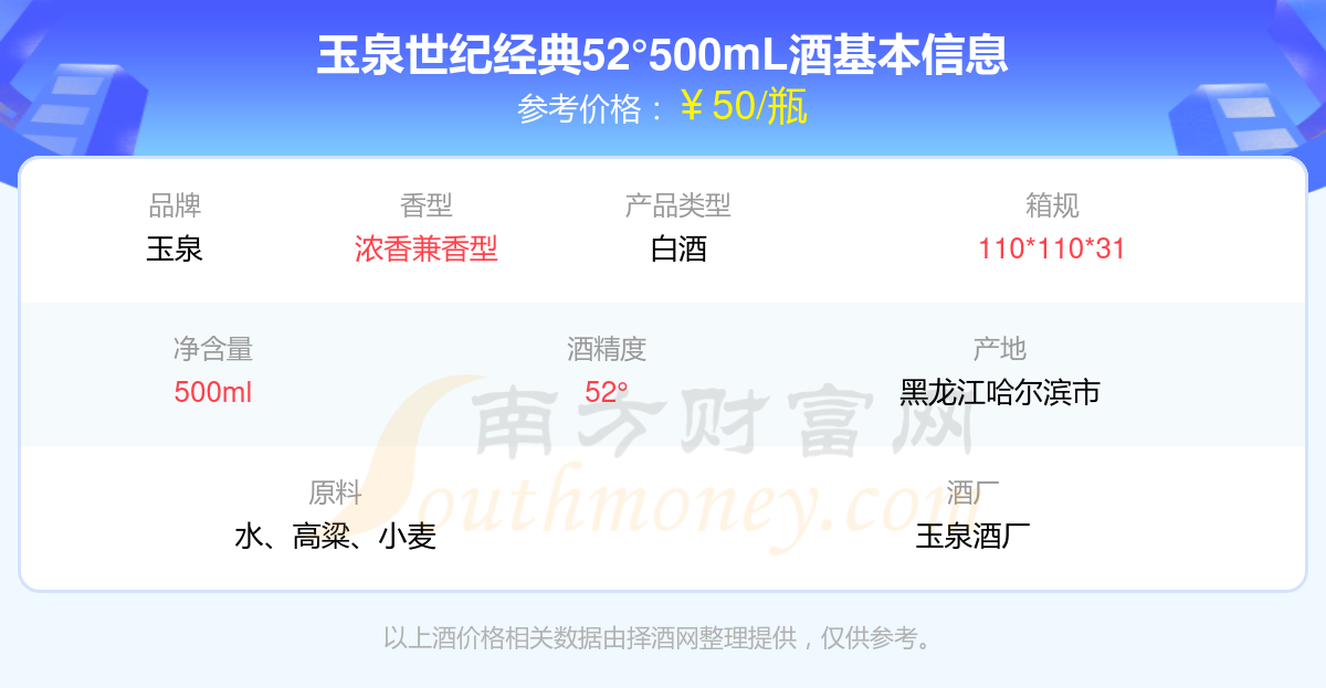 玉泉世紀(jì)經(jīng)典52°500mL基本信息