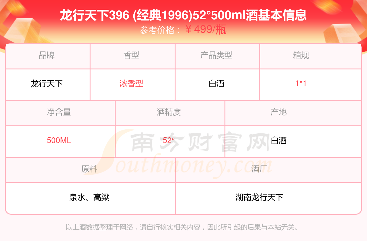 龍行天下396 (經(jīng)典1996)52°500ml基本信息
