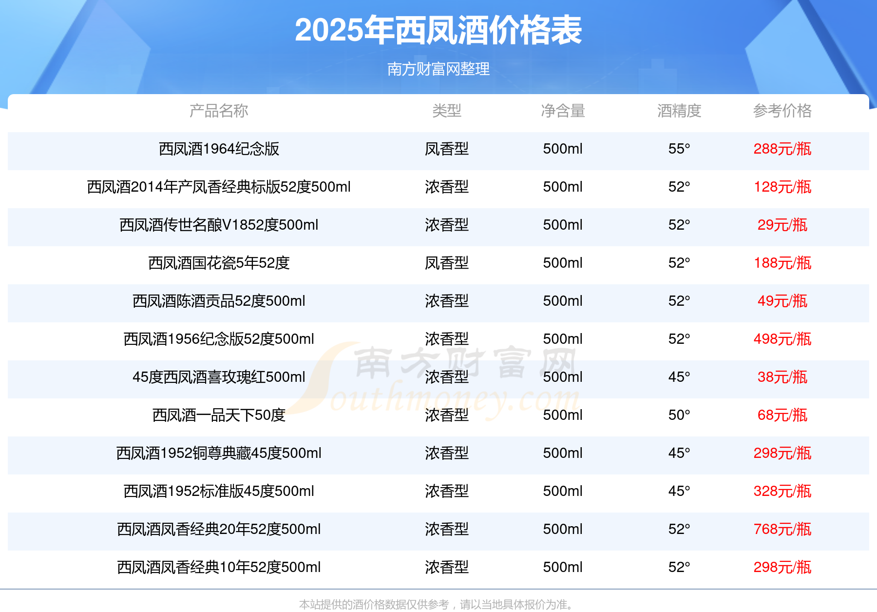 本站提供的酒價(jià)格數(shù)據(jù)僅供參考,請(qǐng)以當(dāng)?shù)鼐唧w報(bào)價(jià)為準(zhǔn)。