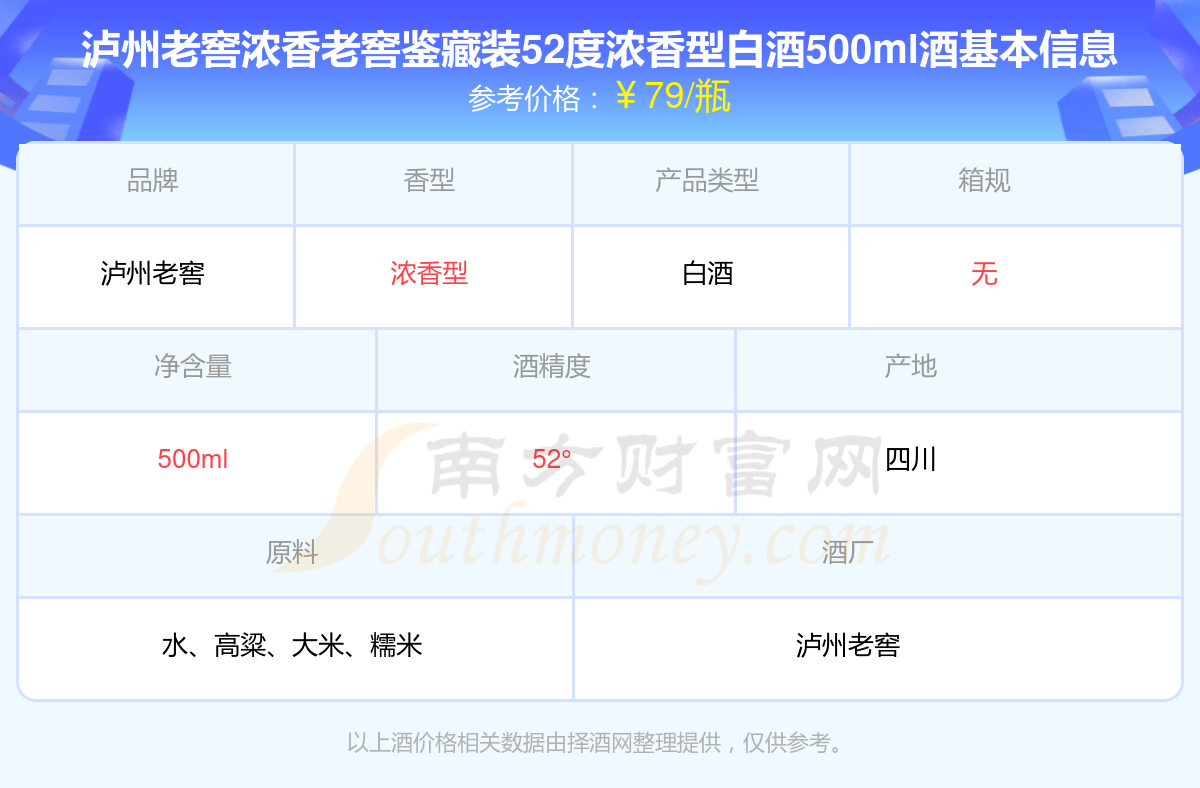 瀘州老窖濃香老窖鑒藏裝52度濃香型白酒500ml基本信息