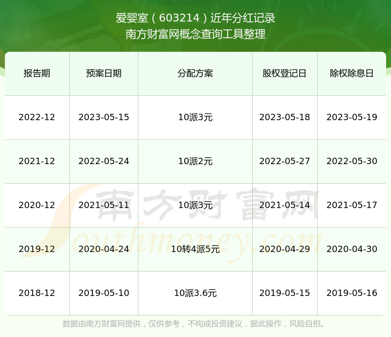 愛嬰室最新一次公布的分紅方案:10派3元。
