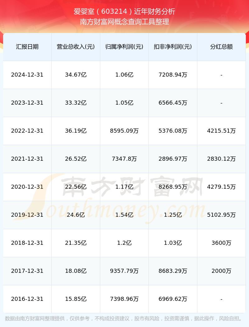 愛嬰室2024年總營收34.67億,同比增長4.06%;凈利潤1.06億,同比增長1.61%;銷售毛利率26.86%。