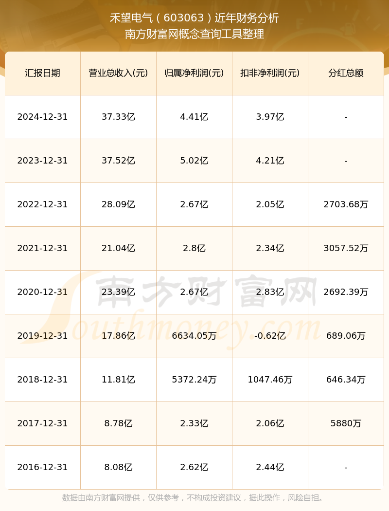 禾望電氣2024年總營收37.33億,同比增長-0.5%;凈利潤4.41億,同比增長-12.28%;銷售毛利率37.86%。