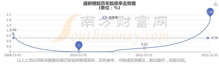 盛新鋰能最新一次公布的分紅方案為10派6.5元。本次權(quán)益分派股權(quán)登記日為2023年4月4日,除權(quán)除息日為2023年4月6日,派息日為2023年4月6日。