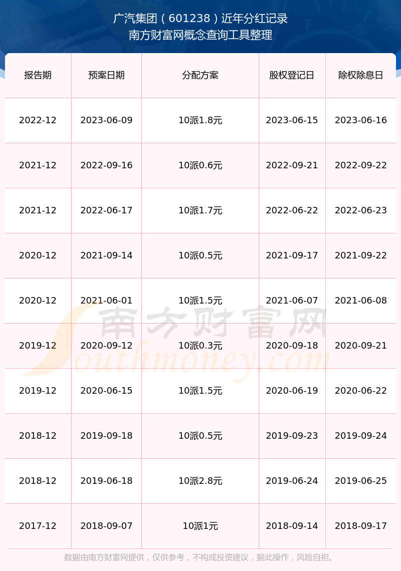 廣汽集團最新一次公布的分紅方案:10派1.8元。