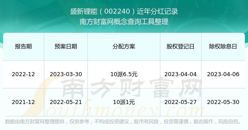 盛新鋰能最新一次公布的分紅方案為10派6.5元。本次權(quán)益分派股權(quán)登記日為2023年4月4日,除權(quán)除息日為2023年4月6日,派息日為2023年4月6日。