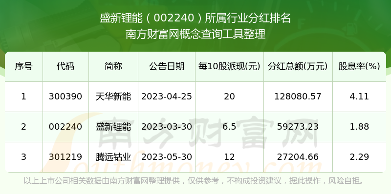 按照南方財(cái)富網(wǎng)趨勢選股系統(tǒng)統(tǒng)計(jì),盛新鋰能所屬行業(yè)為能源金屬行業(yè),能源金屬行業(yè)分紅排名情況如下表: