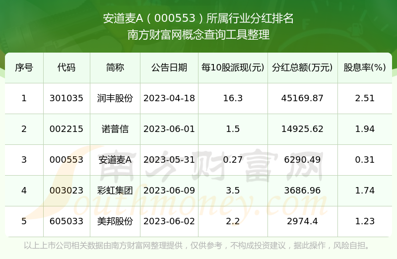 安道麥A最新一次公布的分紅方案為10派0.27元。本次權(quán)益分派股權(quán)登記日為2023年6月5日,除權(quán)除息日為2023年6月6日,派息日為2023年6月6日。