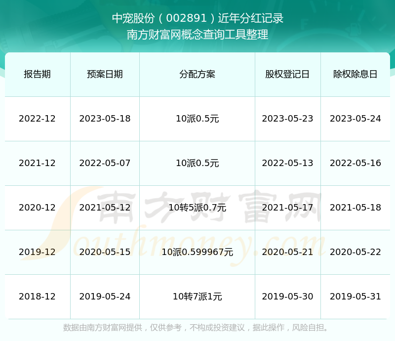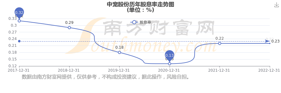 中寵股份最新一次公布的分紅方案為10派0.5元。本次權(quán)益分派股權(quán)登記日為2023年5月23日,除權(quán)除息日為2023年5月24日,派息日為2023年5月24日。