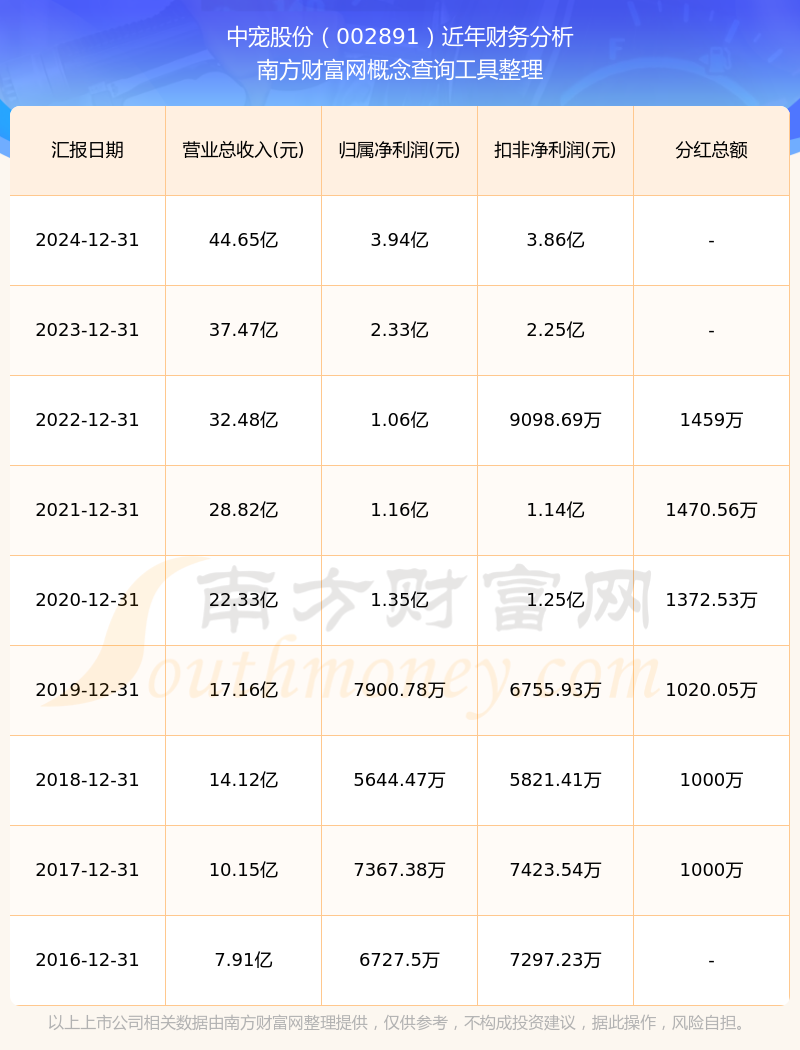 中寵股份2024年總營收44.65億,同比增長19.15%;凈利潤3.94億,同比增長68.89%;銷售毛利率28.16%。