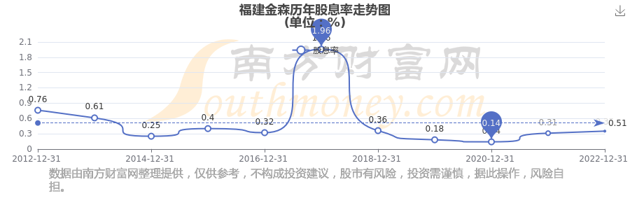 近年福建金森年度股息率走勢如下圖: