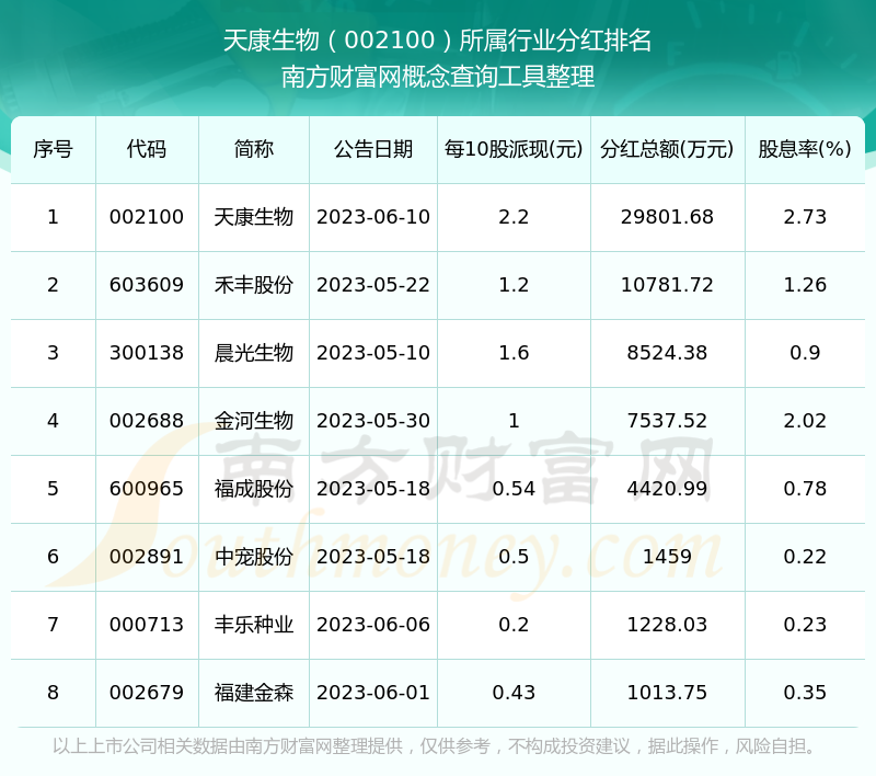 按照南方財(cái)富網(wǎng)趨勢(shì)選股系統(tǒng)統(tǒng)計(jì),天康生物所屬行業(yè)為生物疫苗行業(yè),生物疫苗行業(yè)分紅排名情況如下表:
