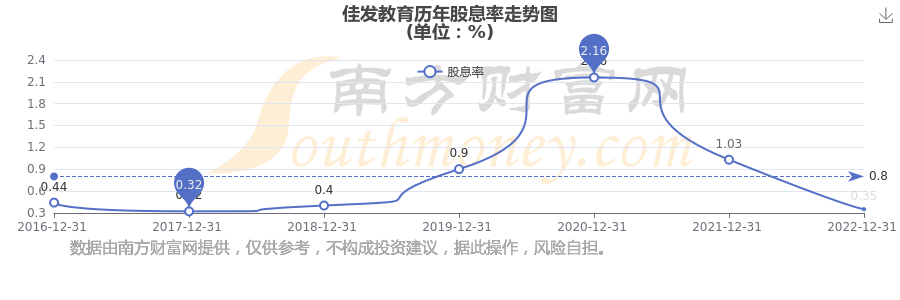 近年佳發(fā)教育年度股息率走勢(shì)如下圖: