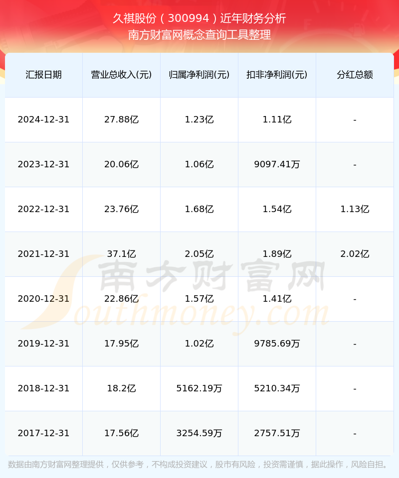 久祺股份最新一次公布的分紅方案:10轉(zhuǎn)2派5.8元。
