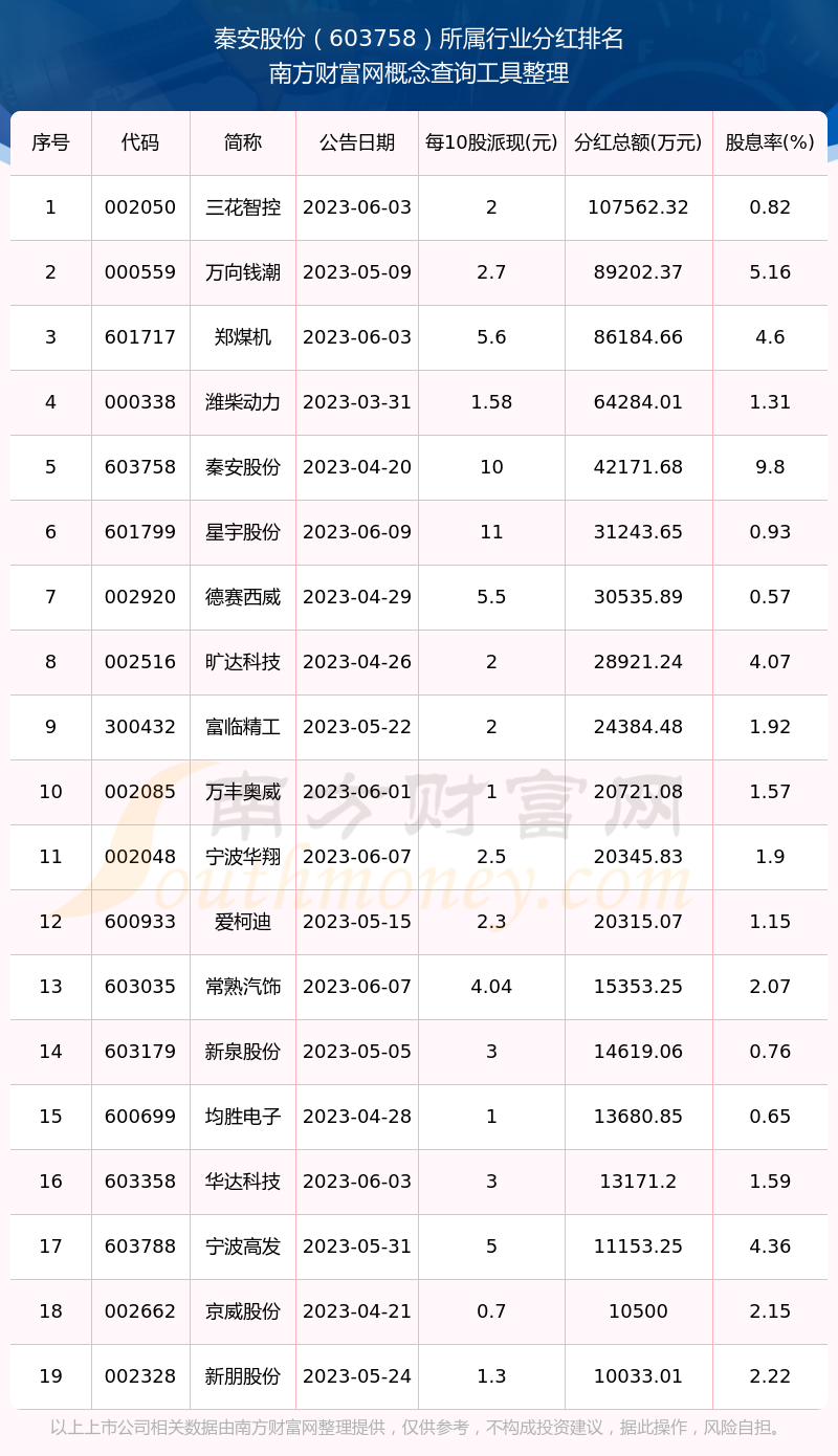 二、秦安股份603758行業(yè)分紅排名