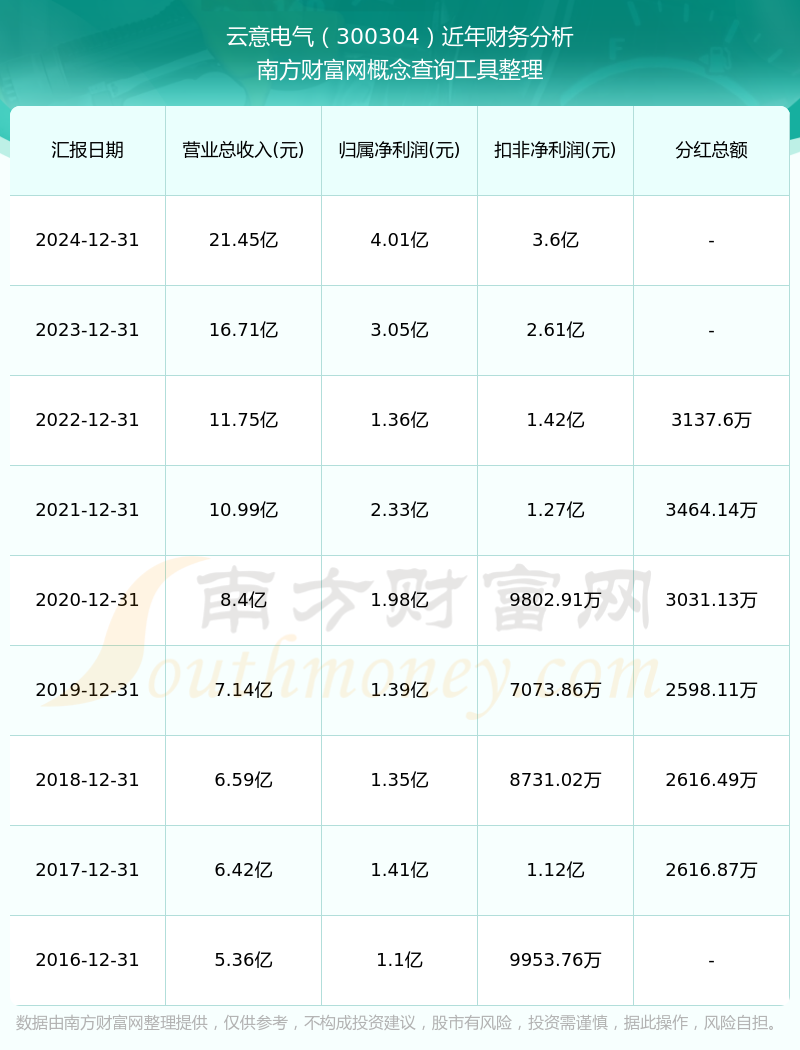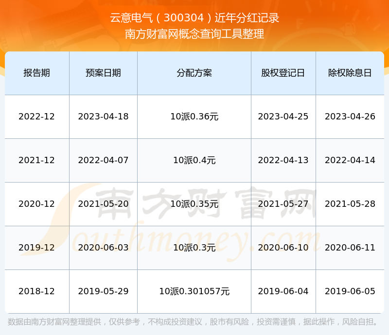 近年云意電氣分紅派息情況如下表所示:
