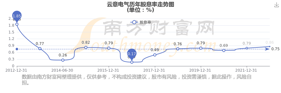 云意電氣歷年股息率走勢(shì)如下圖: