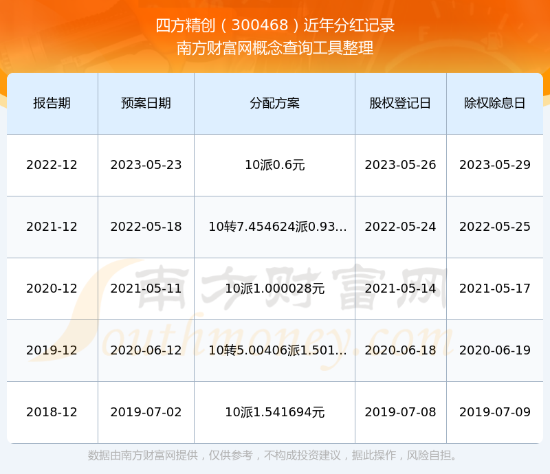 近年四方精創(chuàng)分紅派息情況如下表所示: