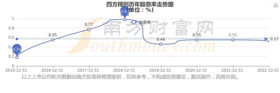 四方精創(chuàng)歷年股息率走勢(shì)如下圖: