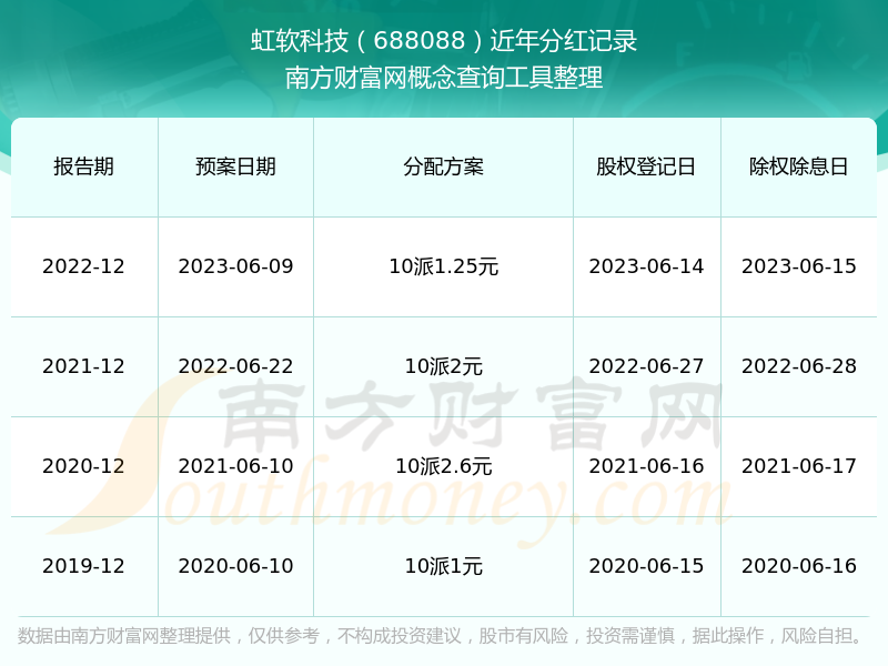 虹軟科技最新一次公布的分紅方案:10派1.25元。