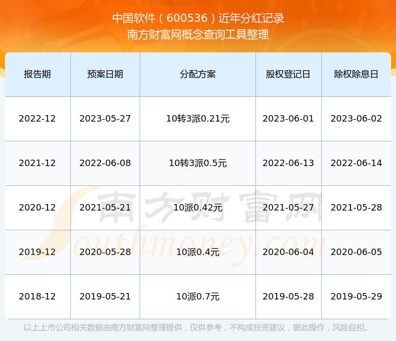 中國軟件最新一次公布的分紅方案:10轉(zhuǎn)3派0.21元。