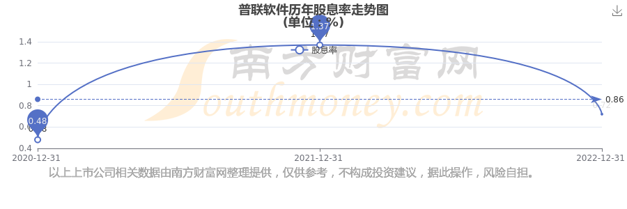 近年普聯(lián)軟件年度股息率走勢如下圖: