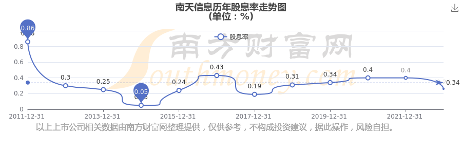 近年南天信息年度股息率走勢如下圖:
