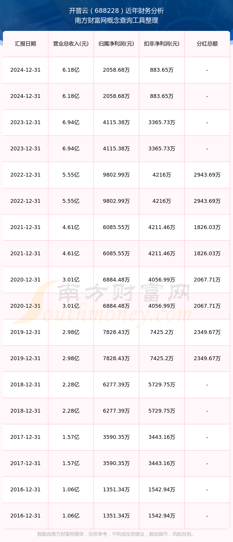 開普云最新一次公布的分紅方案為10派4.43元。本次權益分派股權登記日為2023年6月9日,除權除息日為2023年6月12日,派息日為2023年6月12日。