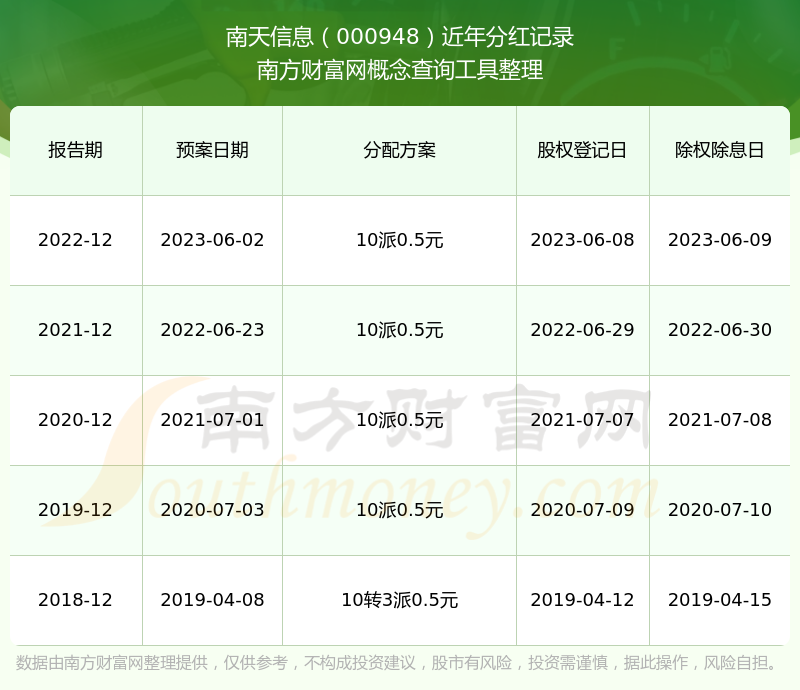 南天信息最新一次公布的分紅方案:10派0.5元。
