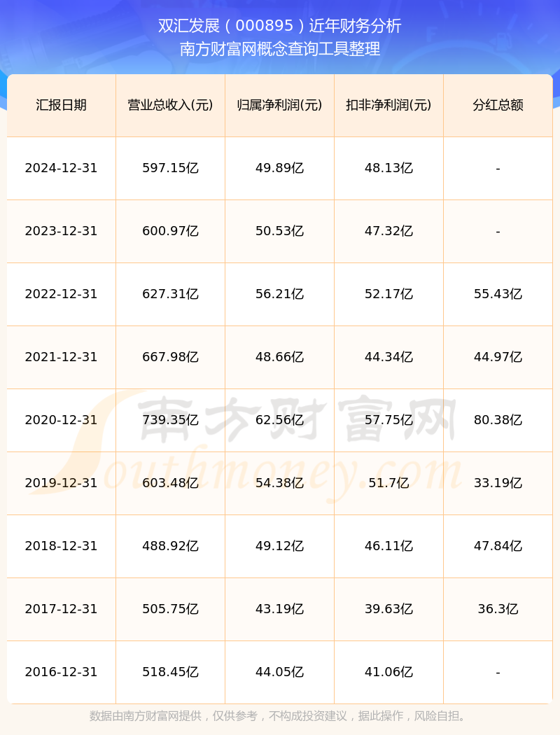 雙匯發(fā)展公司2024年實現(xiàn)營收597.15億元,凈利潤49.89億元,毛利率17.69%。
