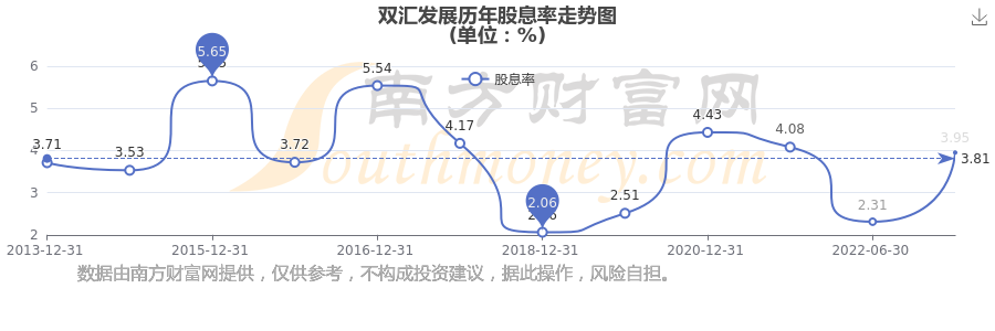 雙匯發(fā)展歷年股息率走勢如下圖: