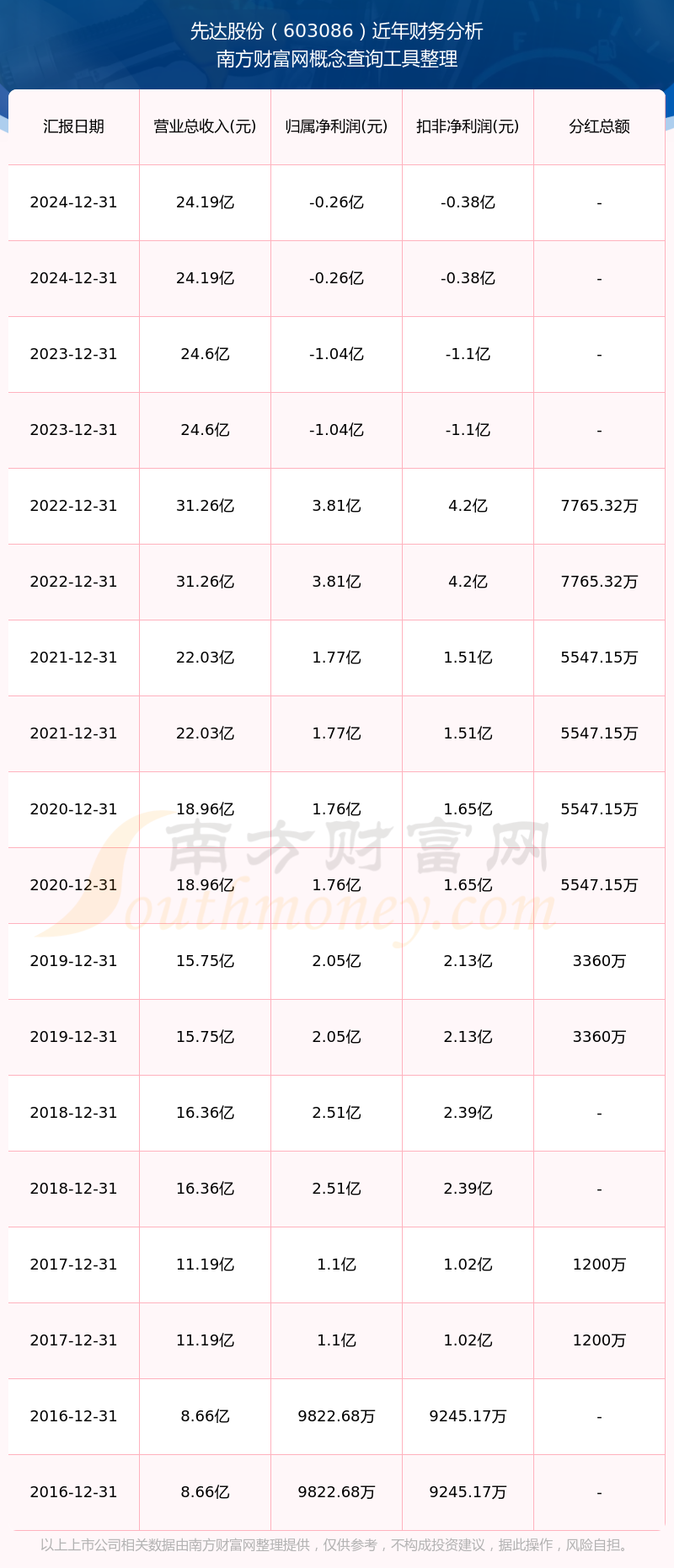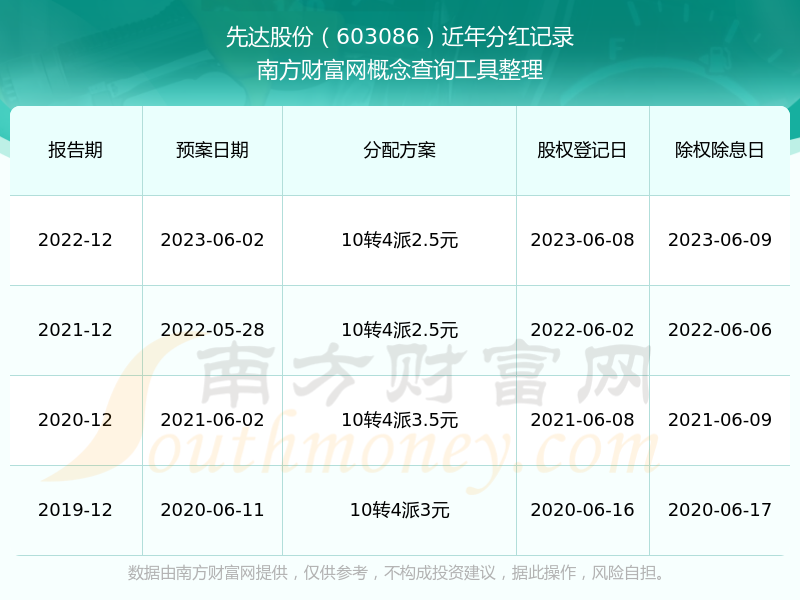 先達(dá)股份歷年分紅派息情況如下表所示: