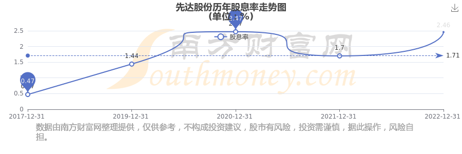先達(dá)股份歷年股息率走勢(shì)如下圖: