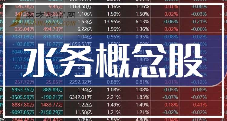 目前,A股關于水務的上市公司具體分布情況為:主板的有25家、中小板的有6家、創(chuàng)業(yè)板的有16家、科創(chuàng)板的有3家。概念查詢工具為您整理了歸屬于水務,并且在A股上市的公司。